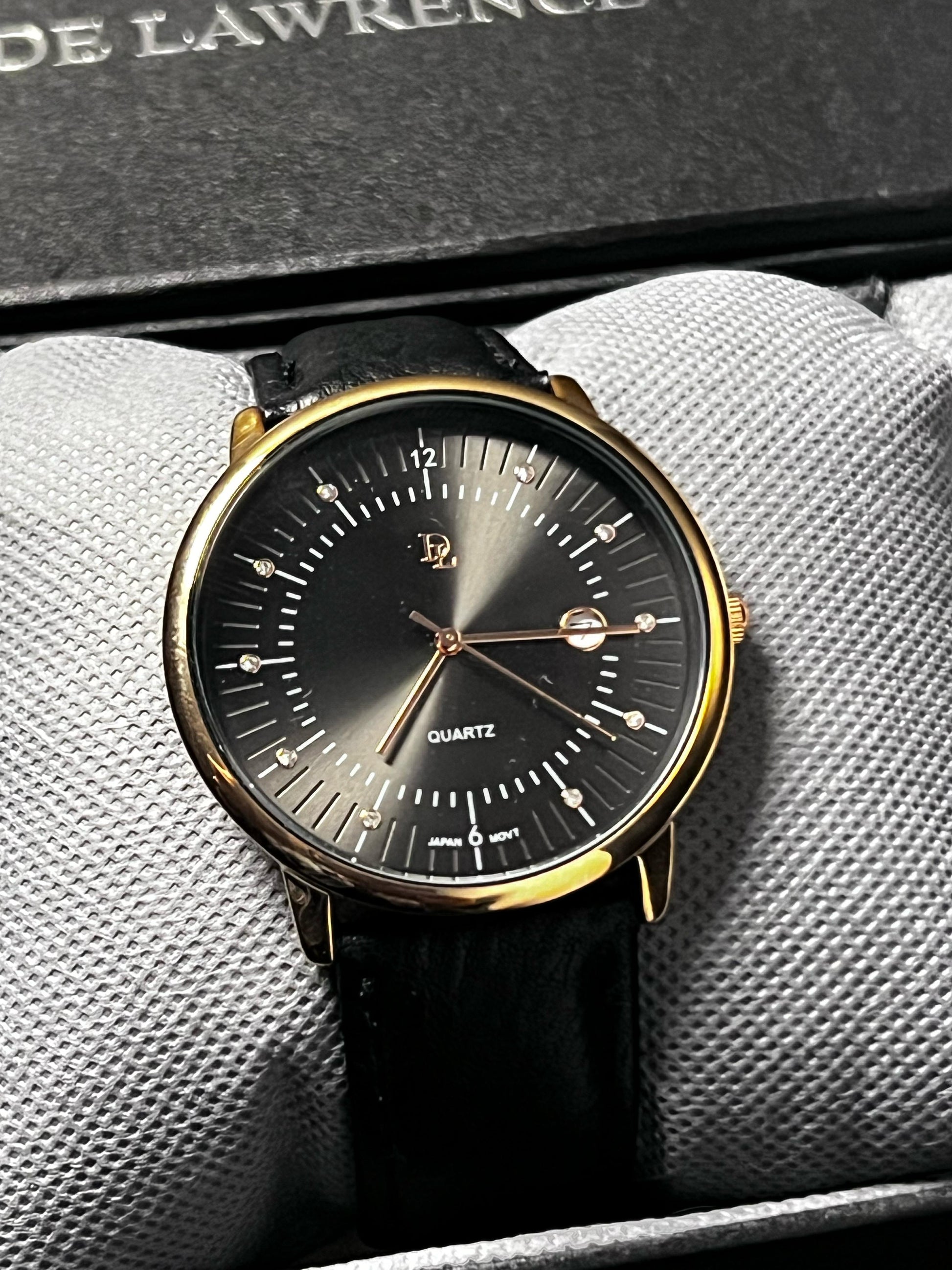 De Lawrence Classic Black & Gold Leather Watch