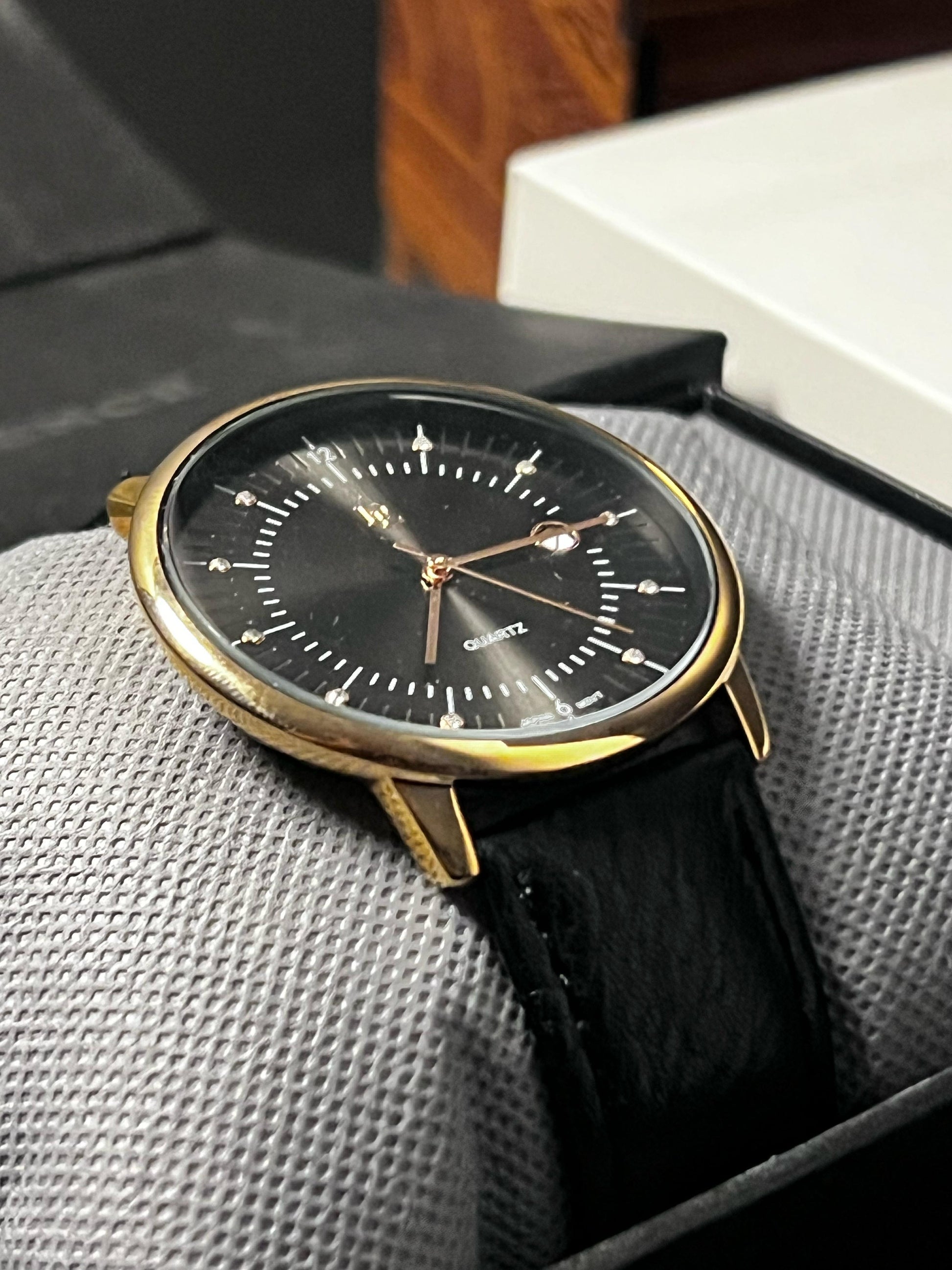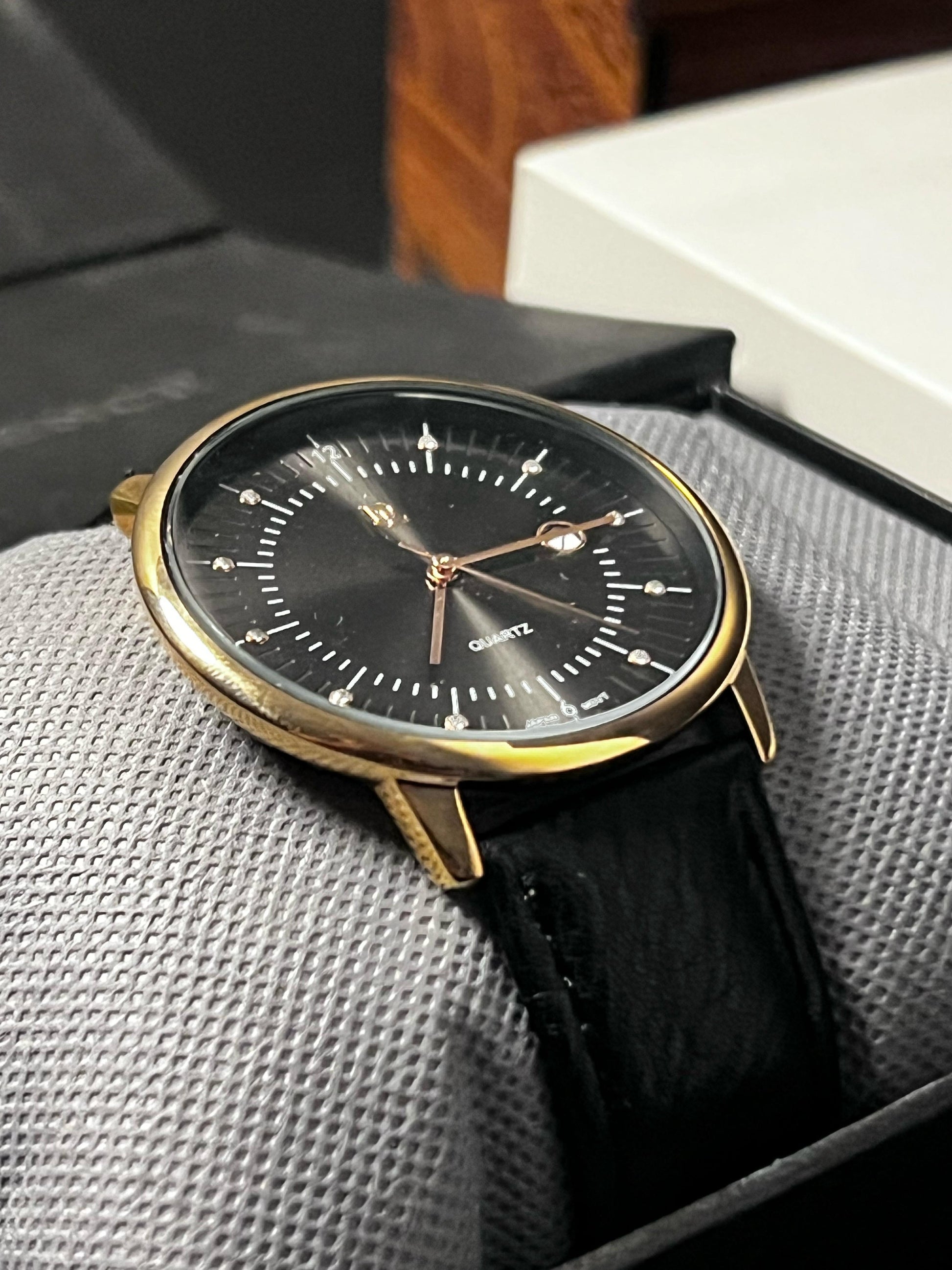 ✅ Color combo: Black Dial | Gold Case | Black Leather Strap