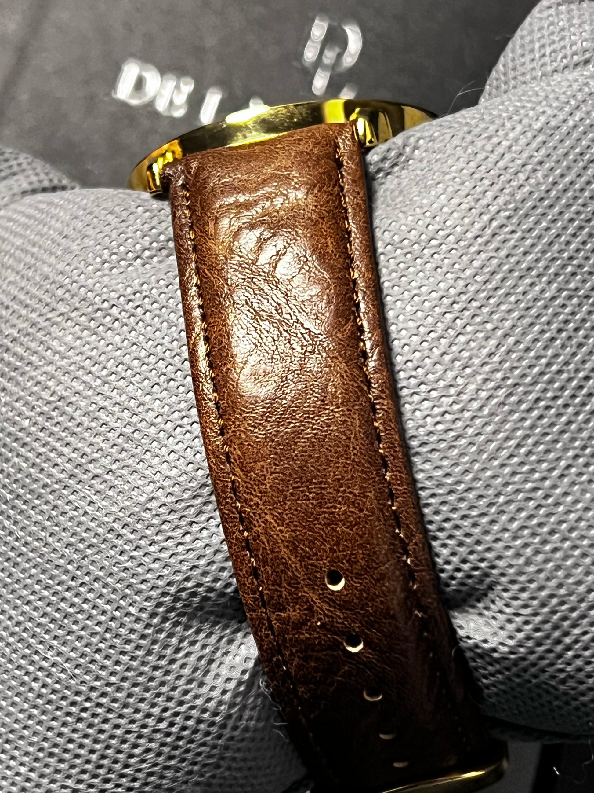 Elevate your style with the De Lawrence Gold & Brown Leather watch. Featuring a radiant gold dial, a polished gold-tone case, and a rich brown leather strap, this timepiece blends luxury with sophistication. Perfect for making a statement. Includes a 7-day exchange warranty!