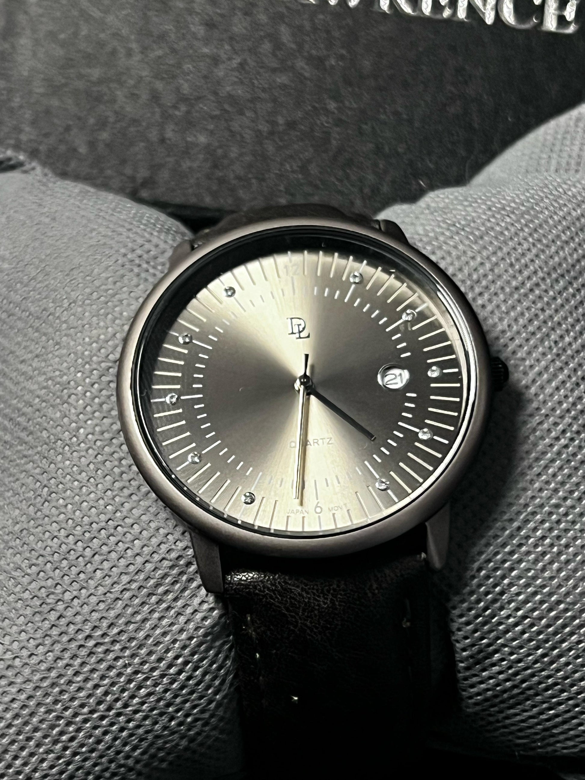 A timeless masterpiece, the De Lawrence Black & Silver watch features a sleek silver sunburst dial with crystal hour markers, a black case, and a premium black leather strap. Perfect for any occasion, this watch is the definition of elegance and precision. Includes a 7-day exchange warranty!