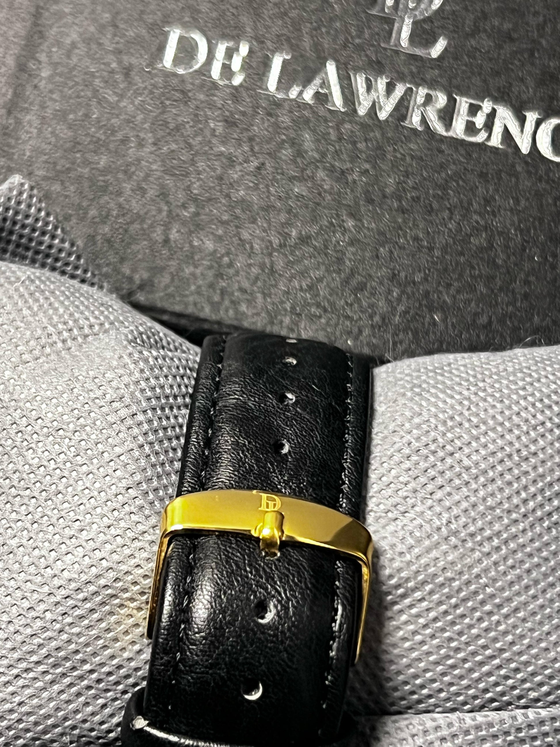 Elevate your style with the De Lawrence Gold & Silver Classic watch. Featuring a sleek silver dial, a luxurious gold-tone case, and a stylish black leather strap, this timepiece adds a touch of sophistication to any look. Includes a 7-day exchange warranty!