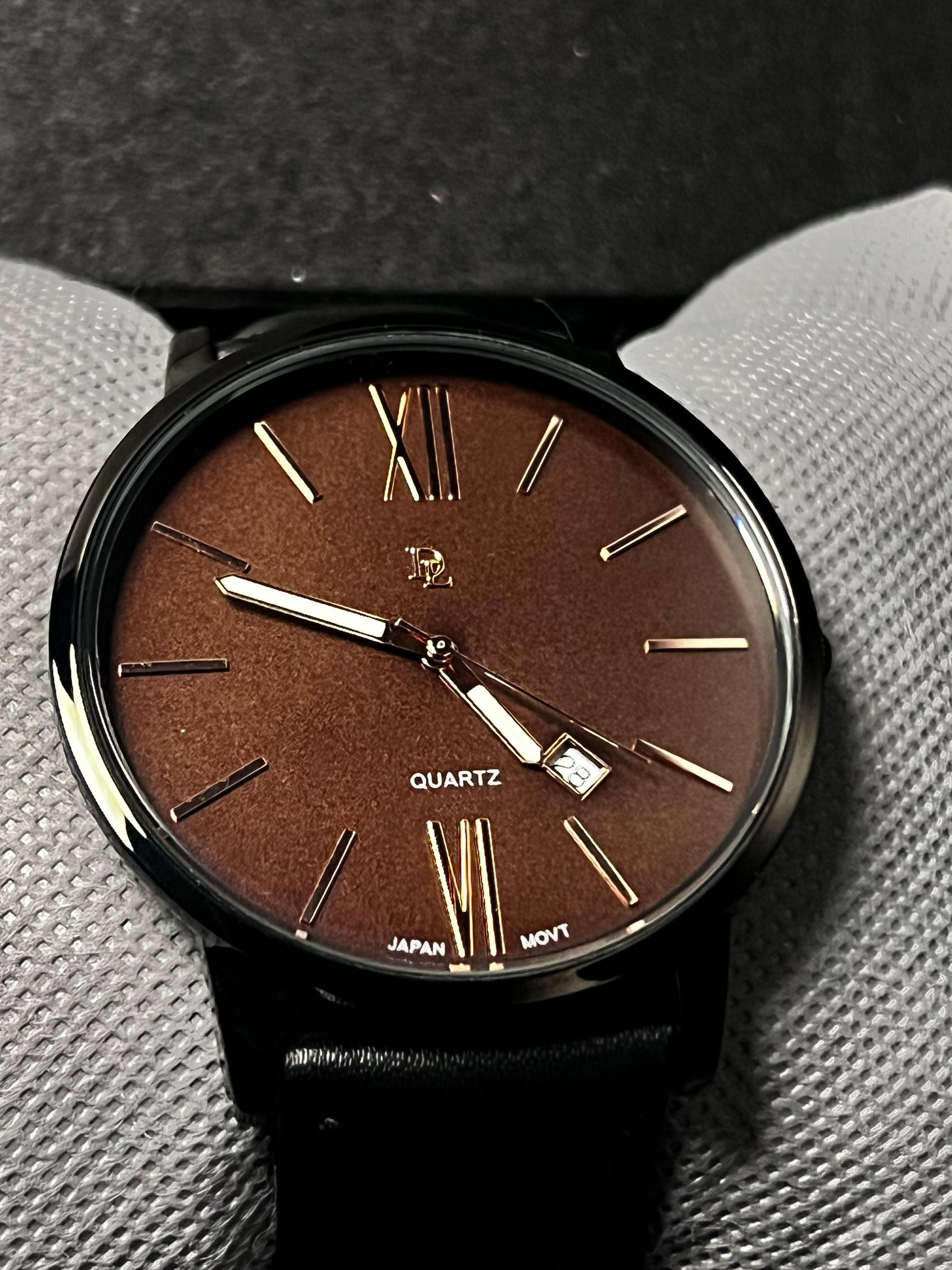 Timeless sophistication meets modern design in the De Lawrence Brown & Black watch. Featuring a rich brown dial with gold-tone accents, a sleek black case, and a premium black leather strap, this watch is the perfect blend of luxury and class. Includes a 7-day exchange warranty!