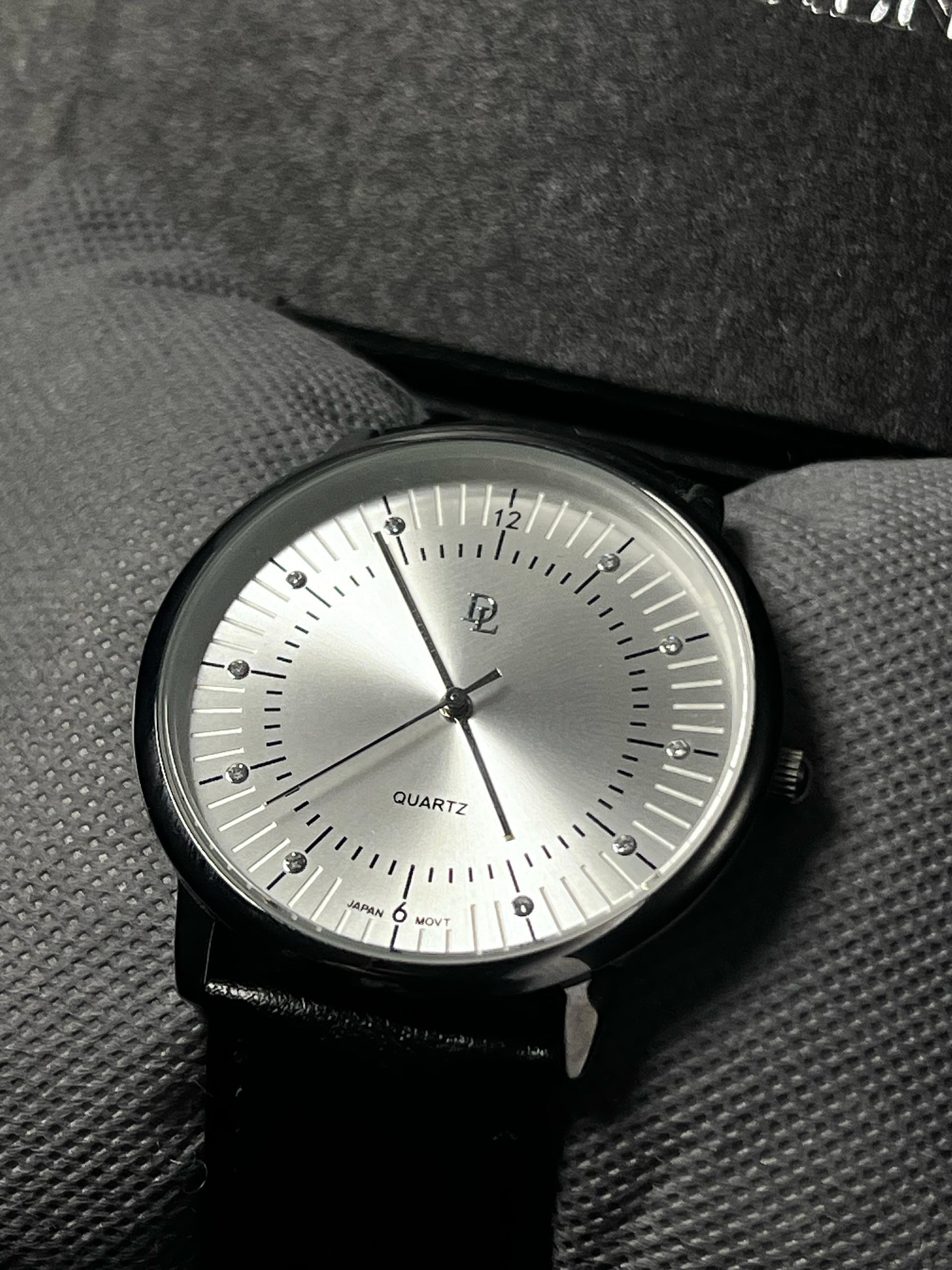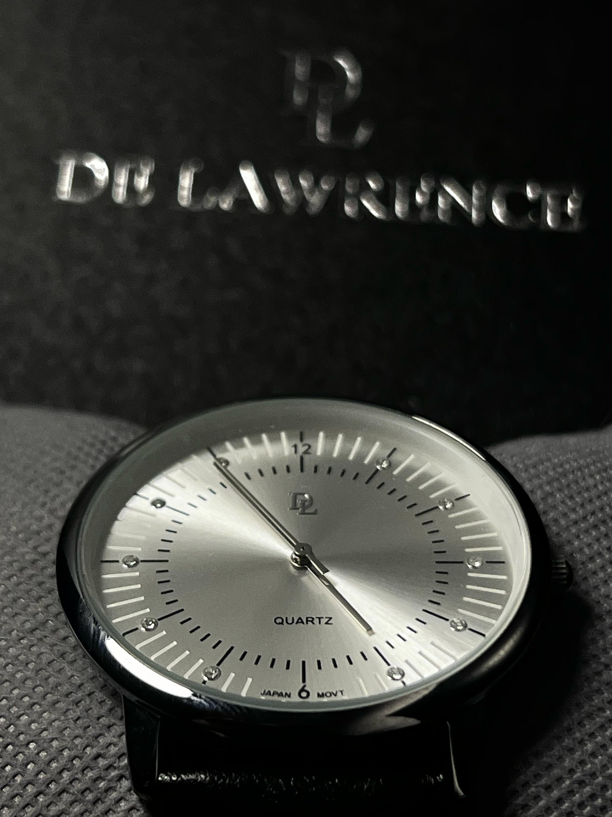 Sophisticated and stylish, this De Lawrence Silver Classic watch features a sleek sunburst dial with crystal accents, precise quartz movement, and a durable black leather strap. Perfect for formal and casual wear alike! Includes a 7-day exchange warranty!