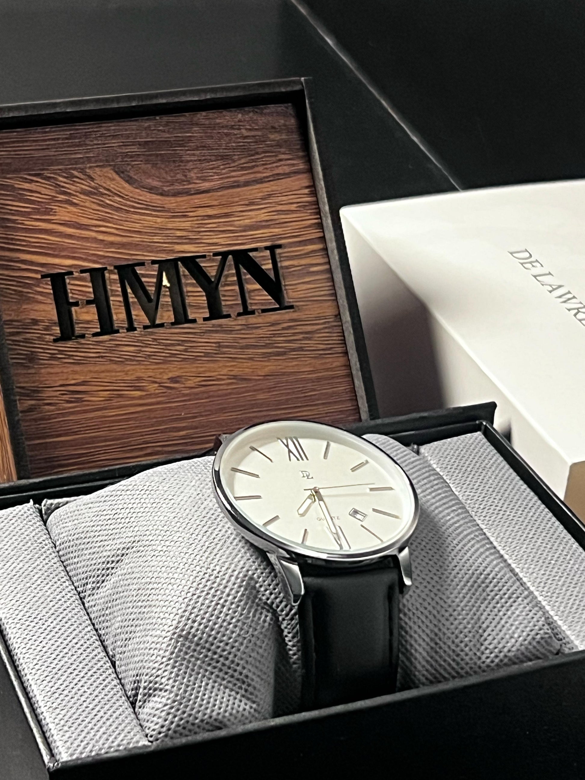 Refined elegance meets modern sophistication with this HMYN timepiece. Featuring a sleek silver case, a crisp white dial, and a premium black leather strap, this watch is the perfect blend of style and function. Ideal for any occasion, and backed by our 7-day exchange warranty for your peace of mind!