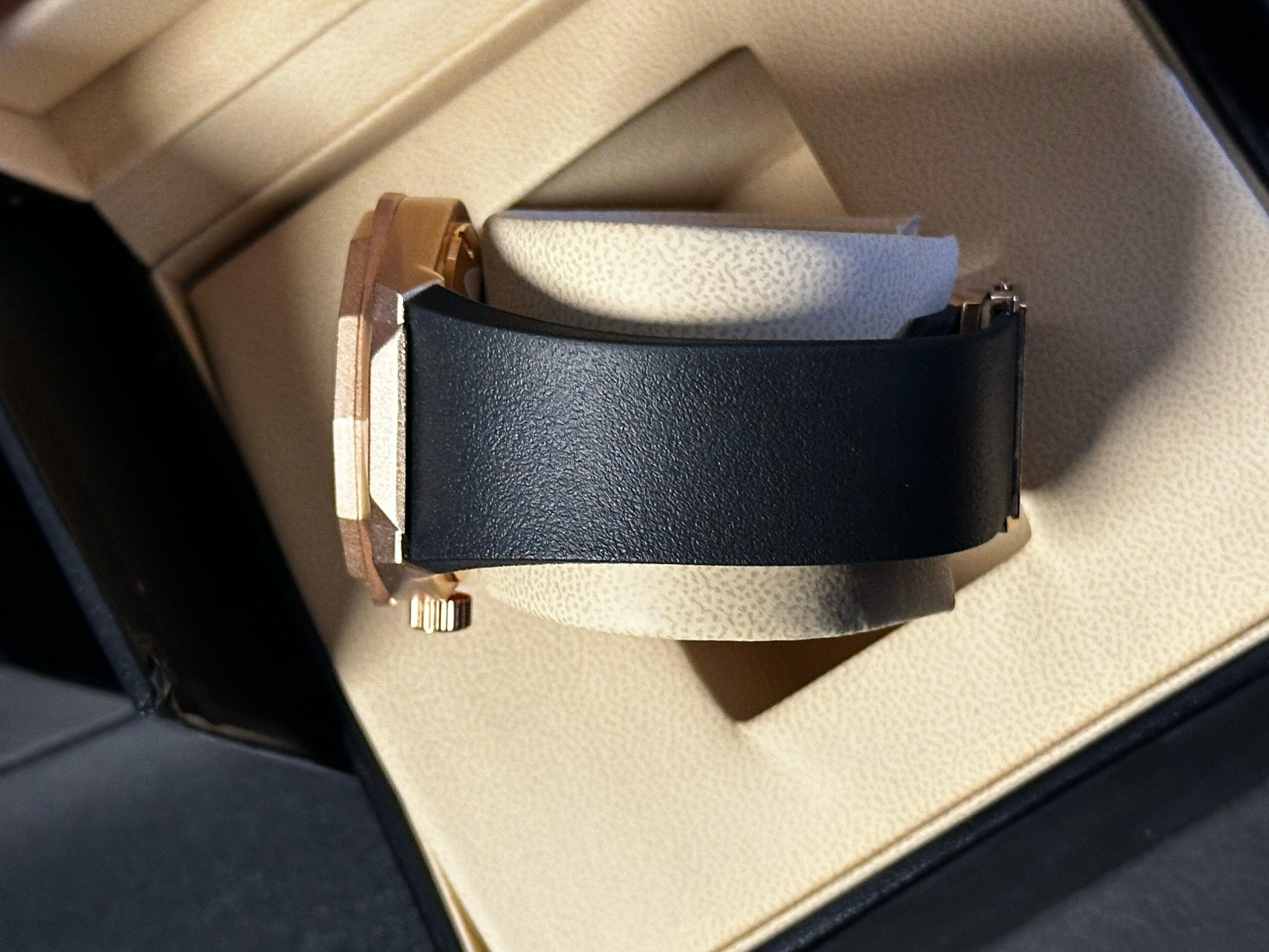 Where luxury meets modern architecture. This standout piece features a faceted gold-tone bezel paired with a mesmerizing skeleton dial that reveals the intricate movement beneath. Bold, angular, and unapologetically unique — it’s a watch that makes a statement without saying a word.