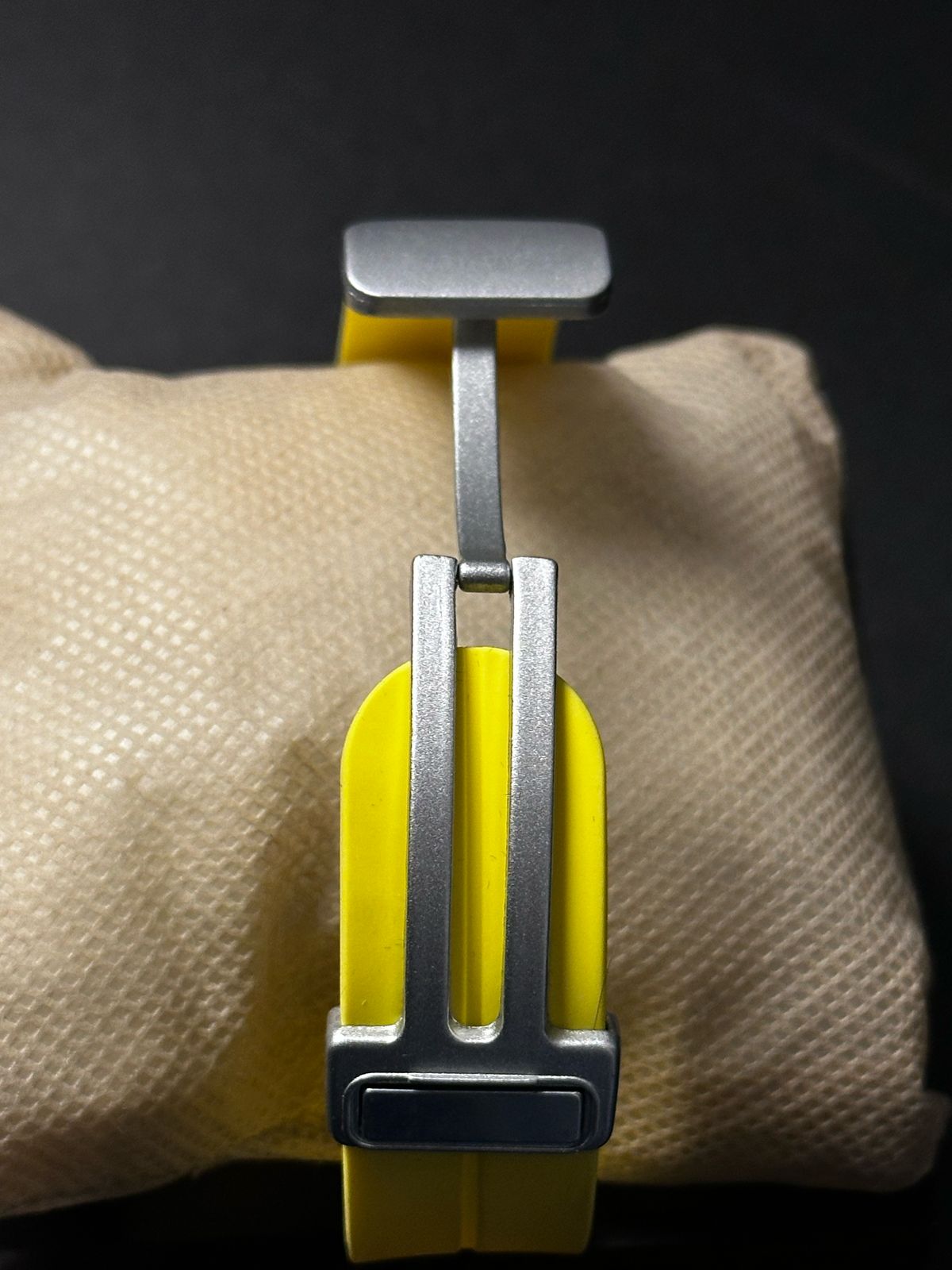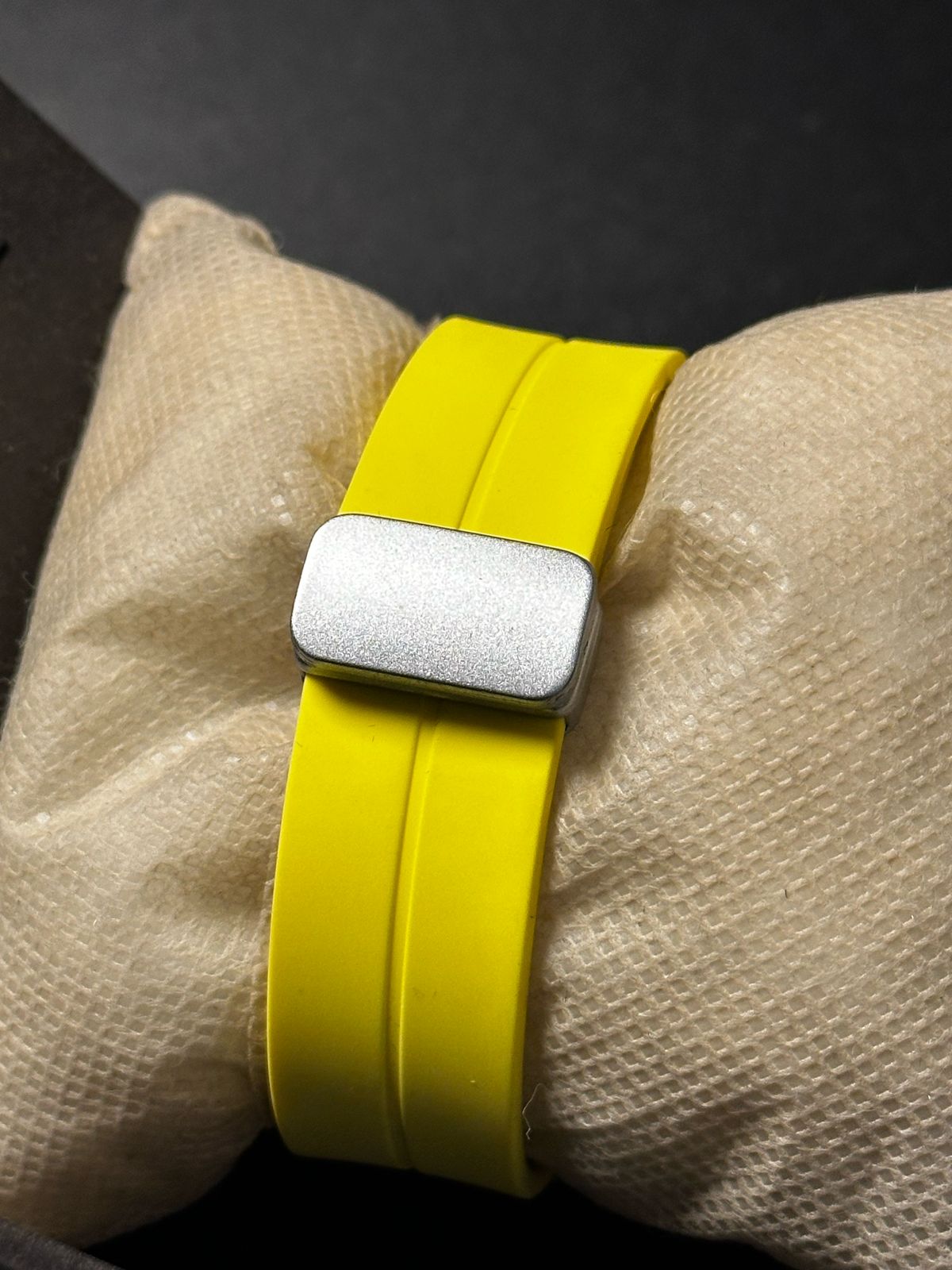 🟡 Bright yellow silicone strap for a pop of color and comfort
