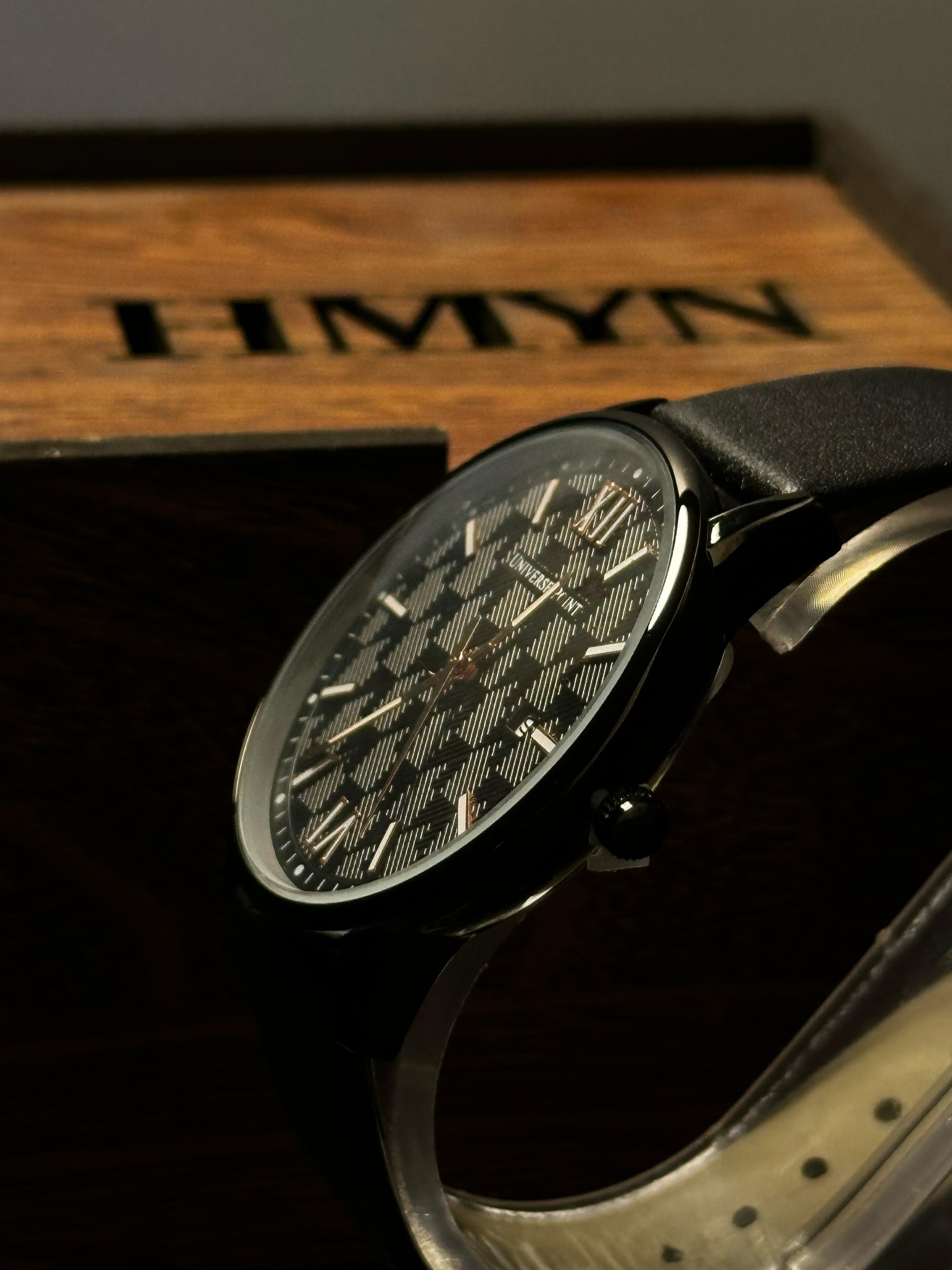 Where texture meets time. The Obsidian Weave elevates your wrist game with its striking patterned dial and bold Roman numeral accents.