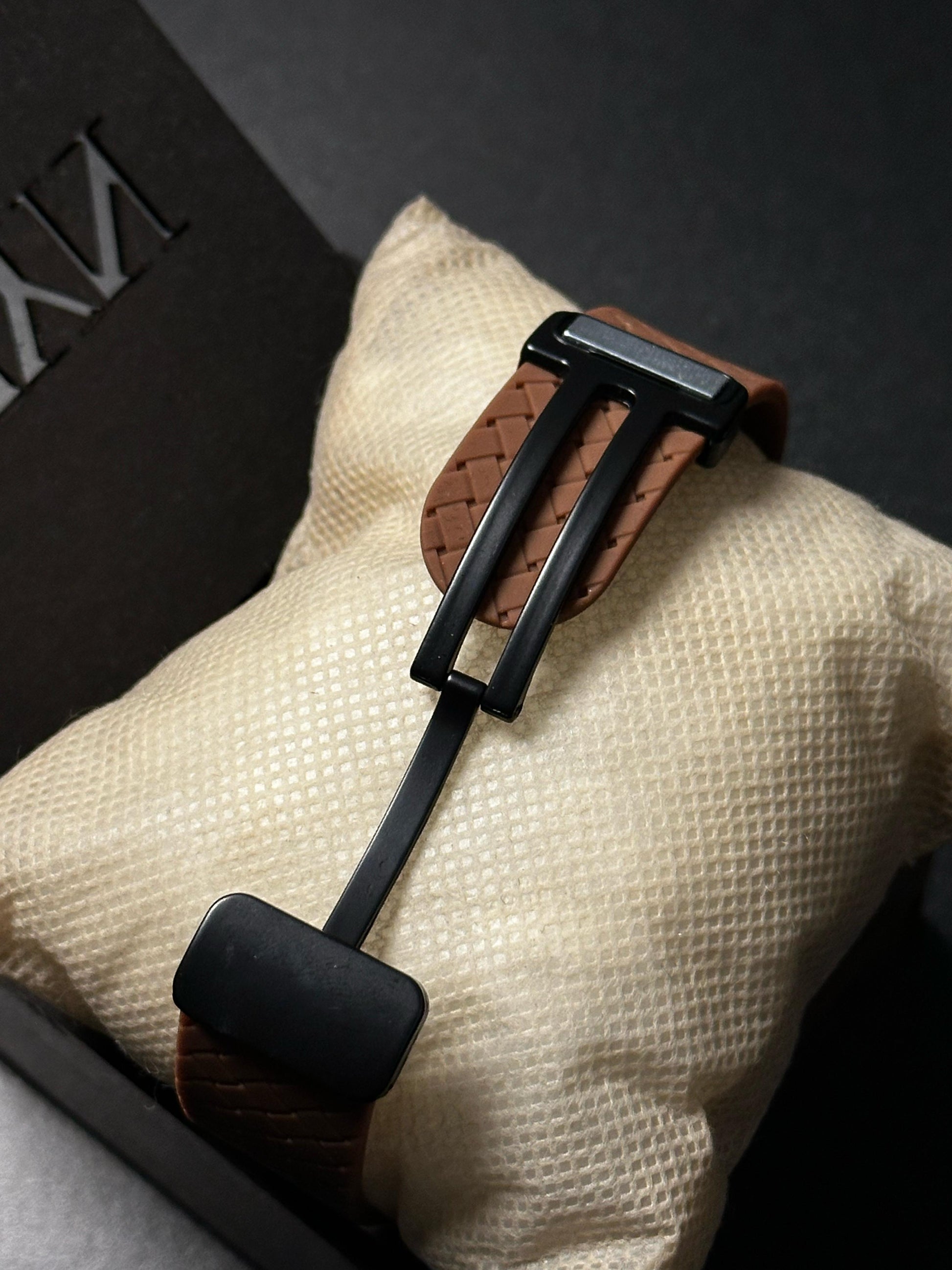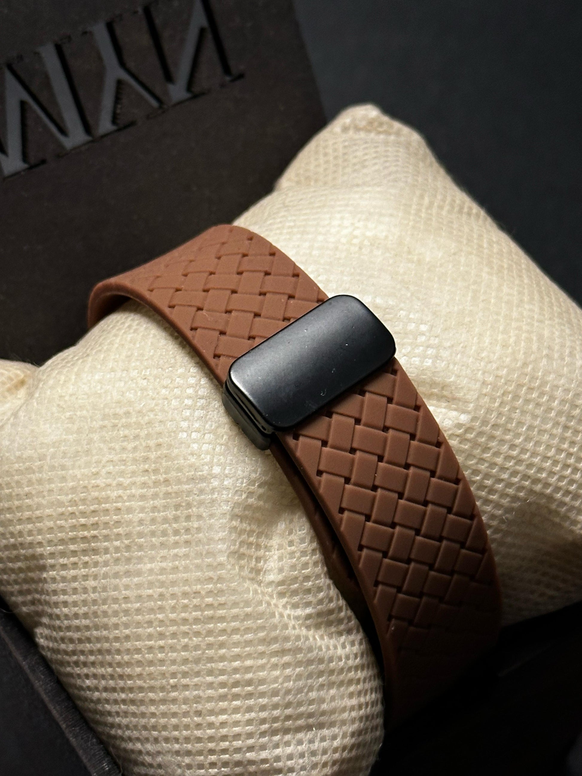 🟤 Embossed brown silicone strap for all-day comfort and rugged flair