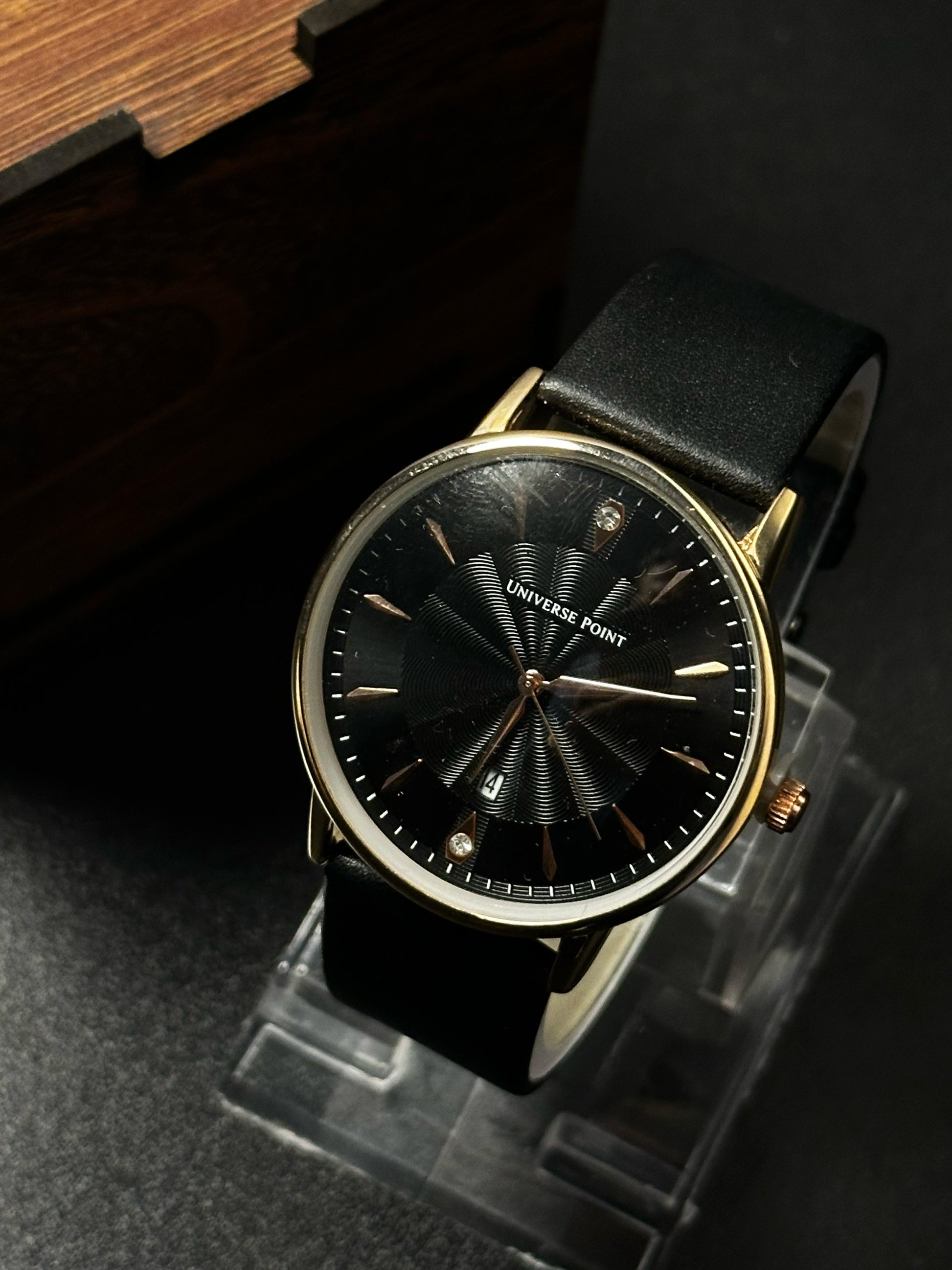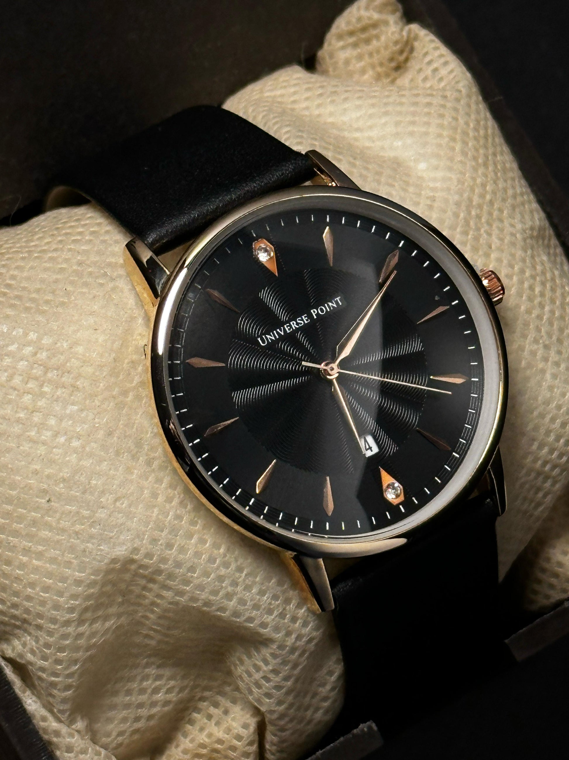 ⚫ Deep black dial with hypnotic radial texture that draws the eye