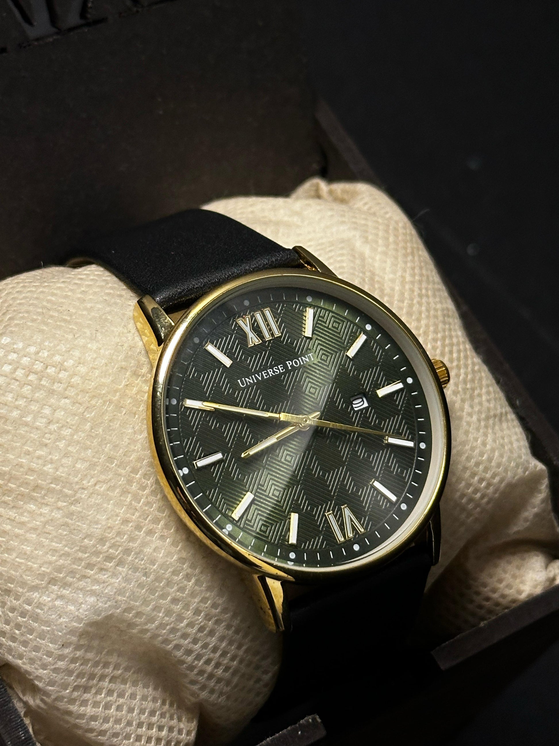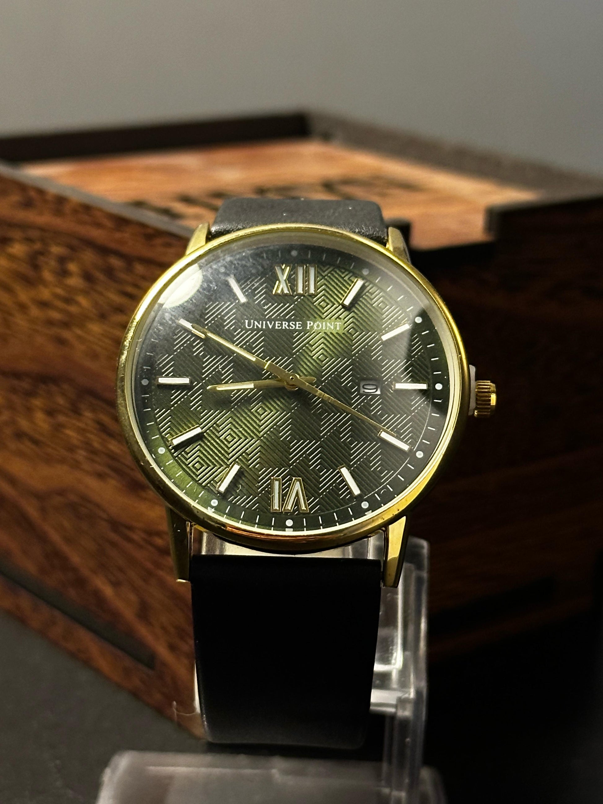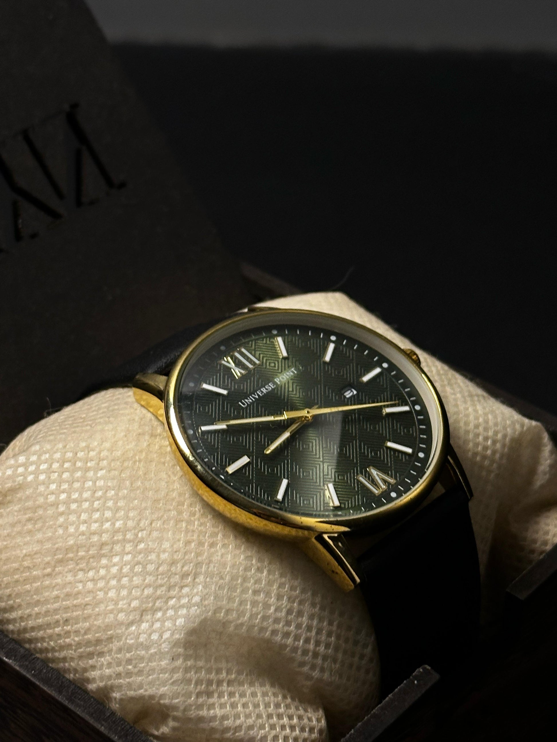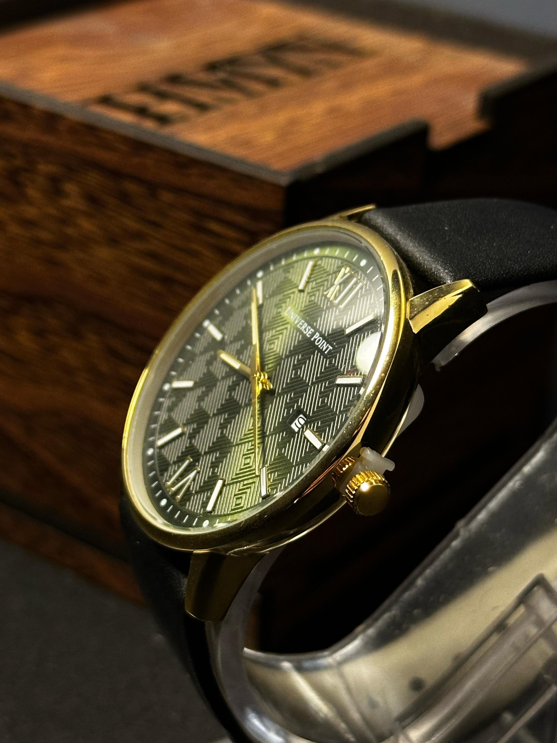 💚 Deep green dial with geometric texture for a rich, dimensional look