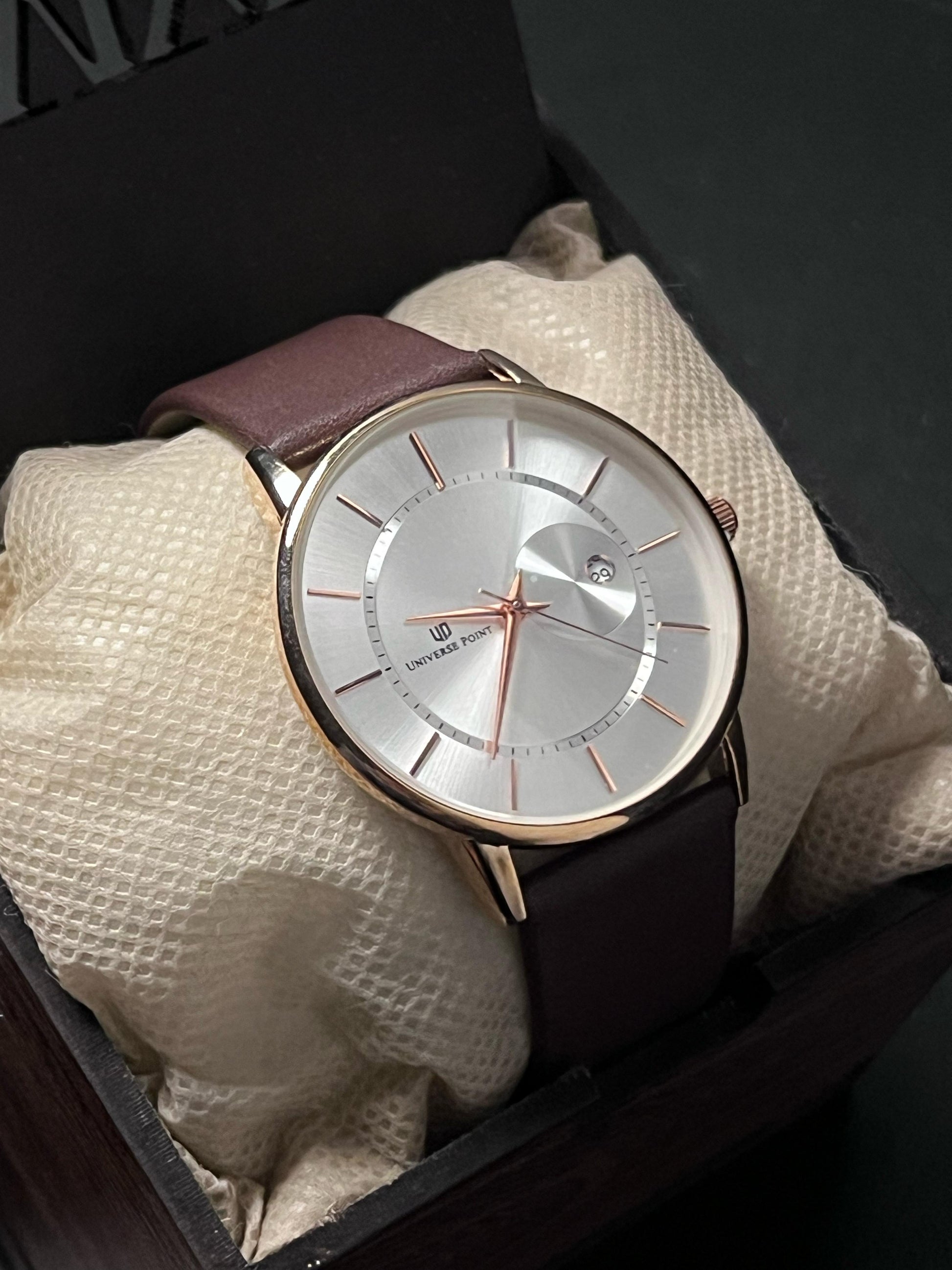 🤎 Rich brown leather strap – classic comfort meets warm tones