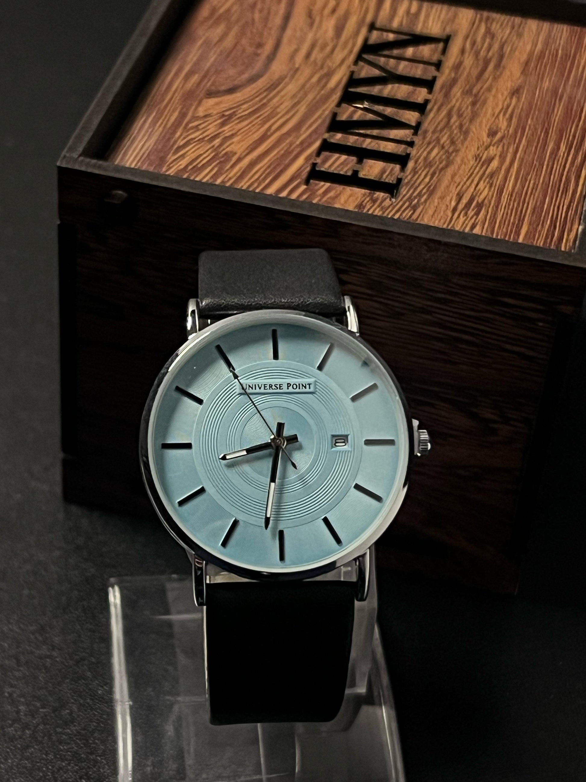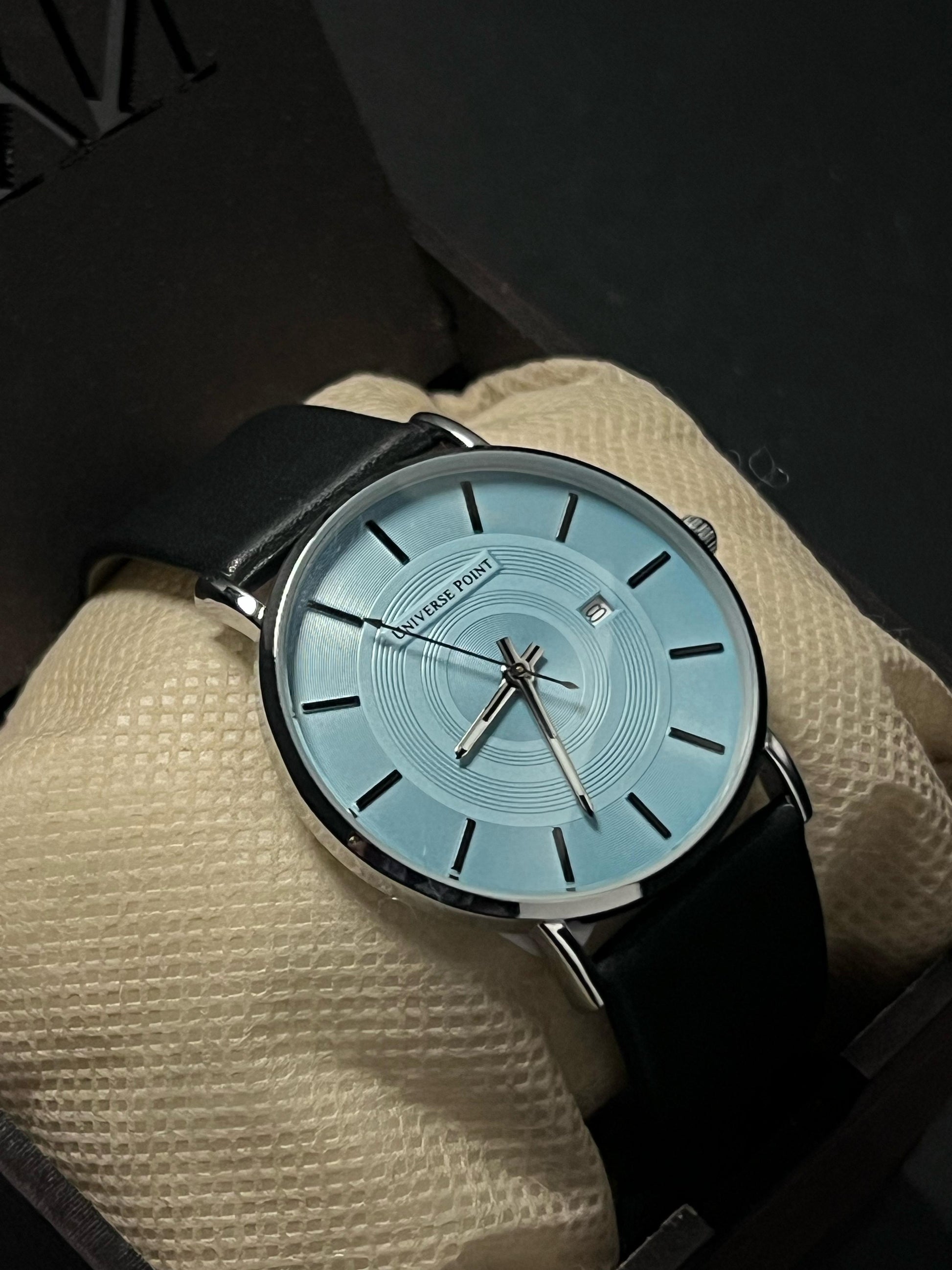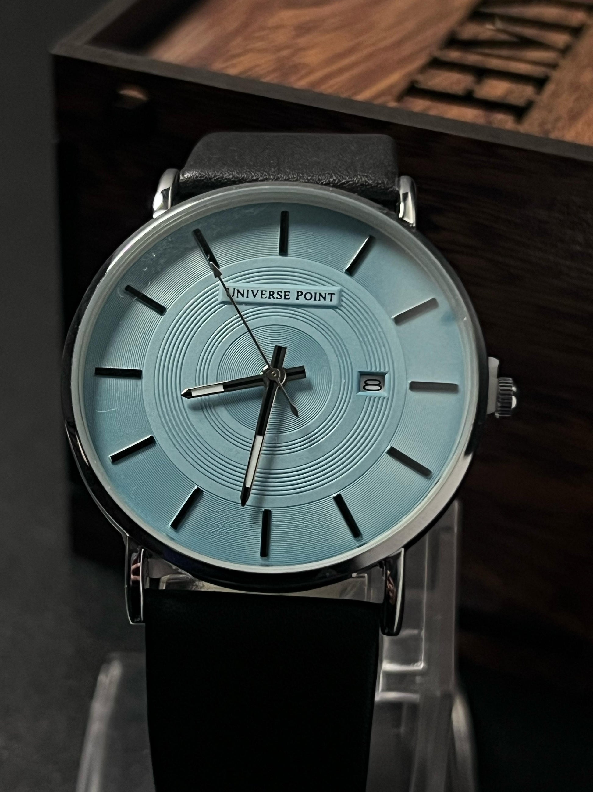 💎 Frosted ice-blue dial – textured concentric rings create a subtle hypnotic shimmer