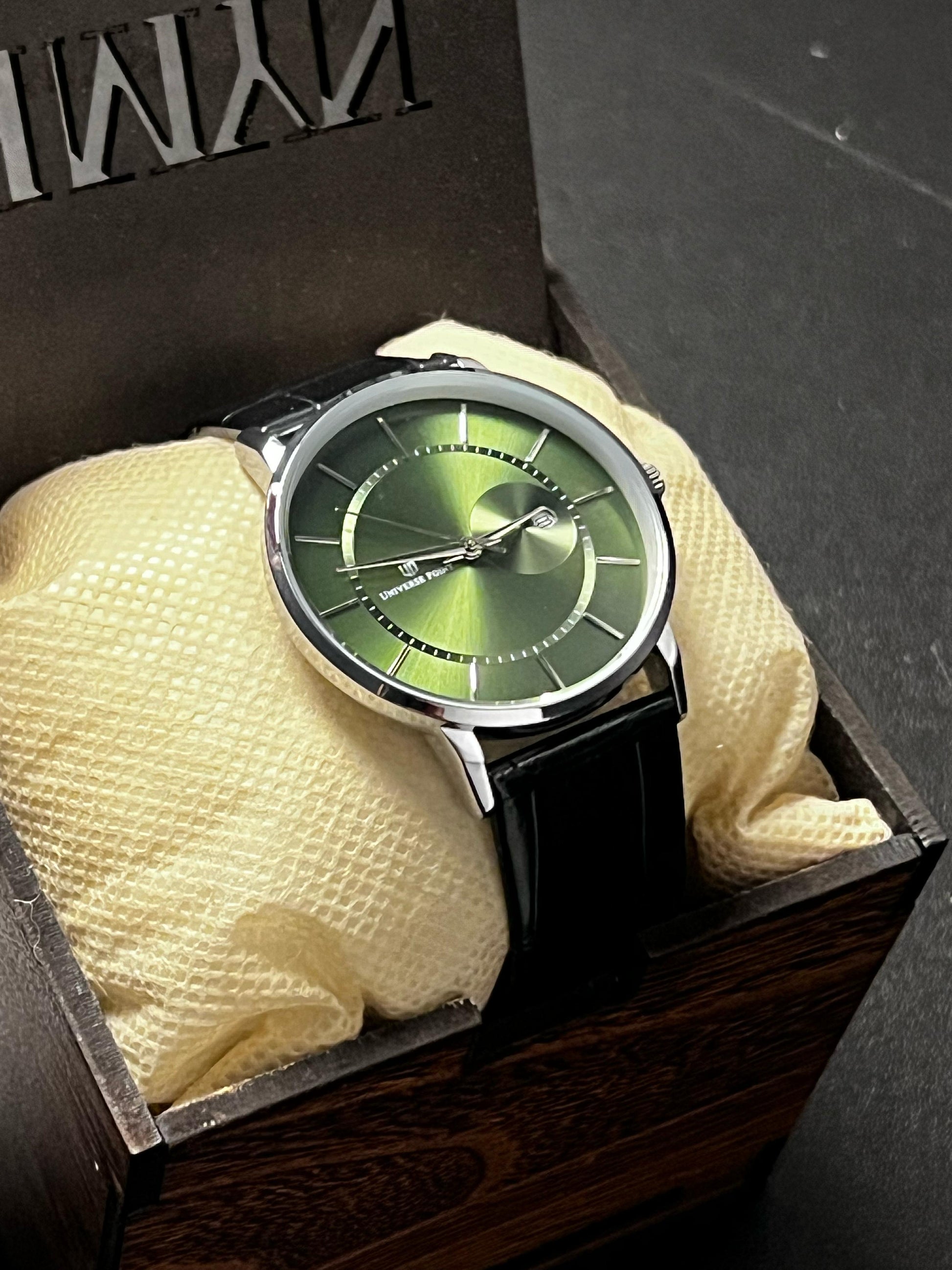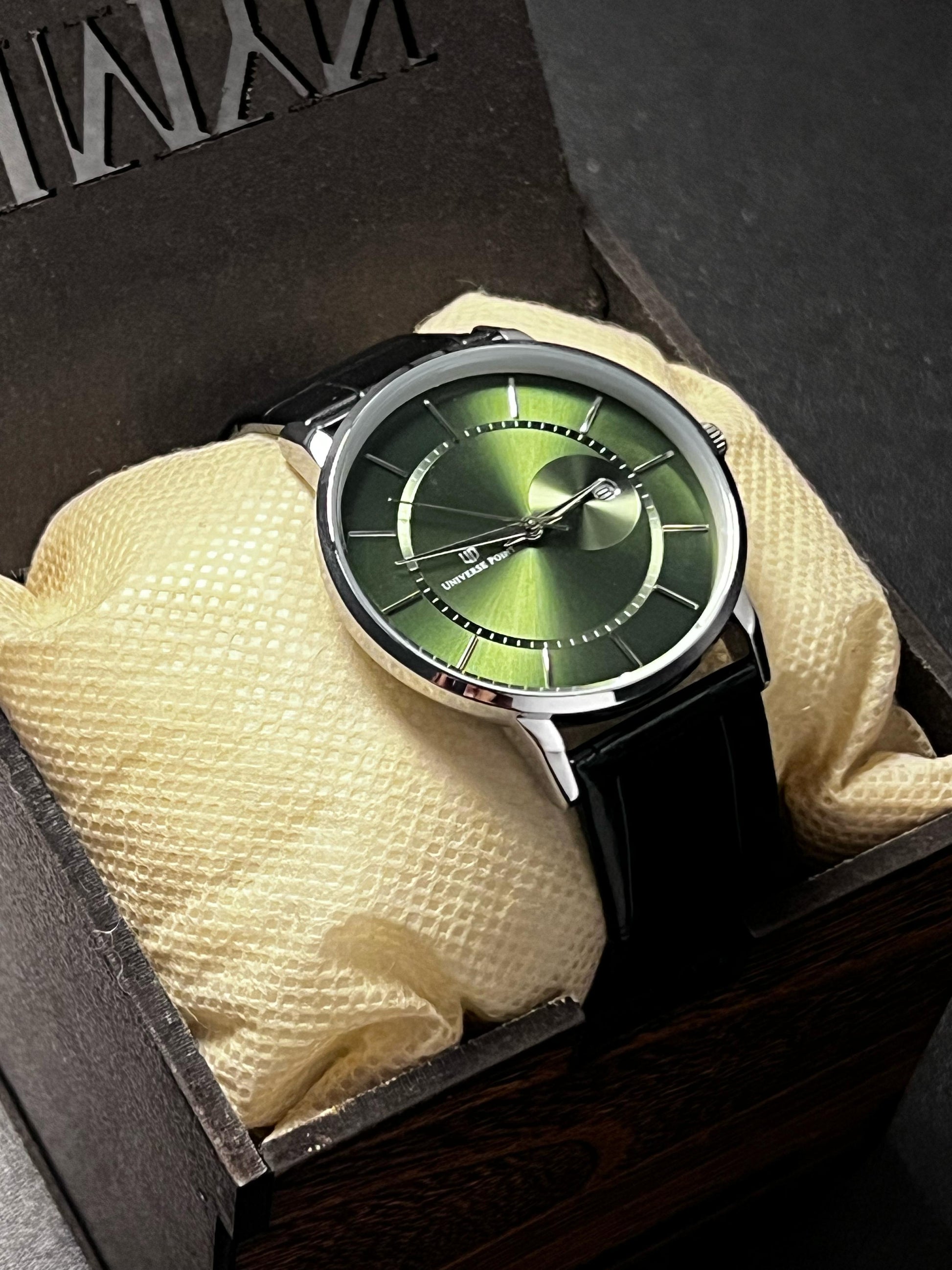 The Verdant Eclipse is a conversation starter. It’s not just a watch — it’s a statement. Sophisticated yet expressive, designed for those who like a pop of color with their class.
