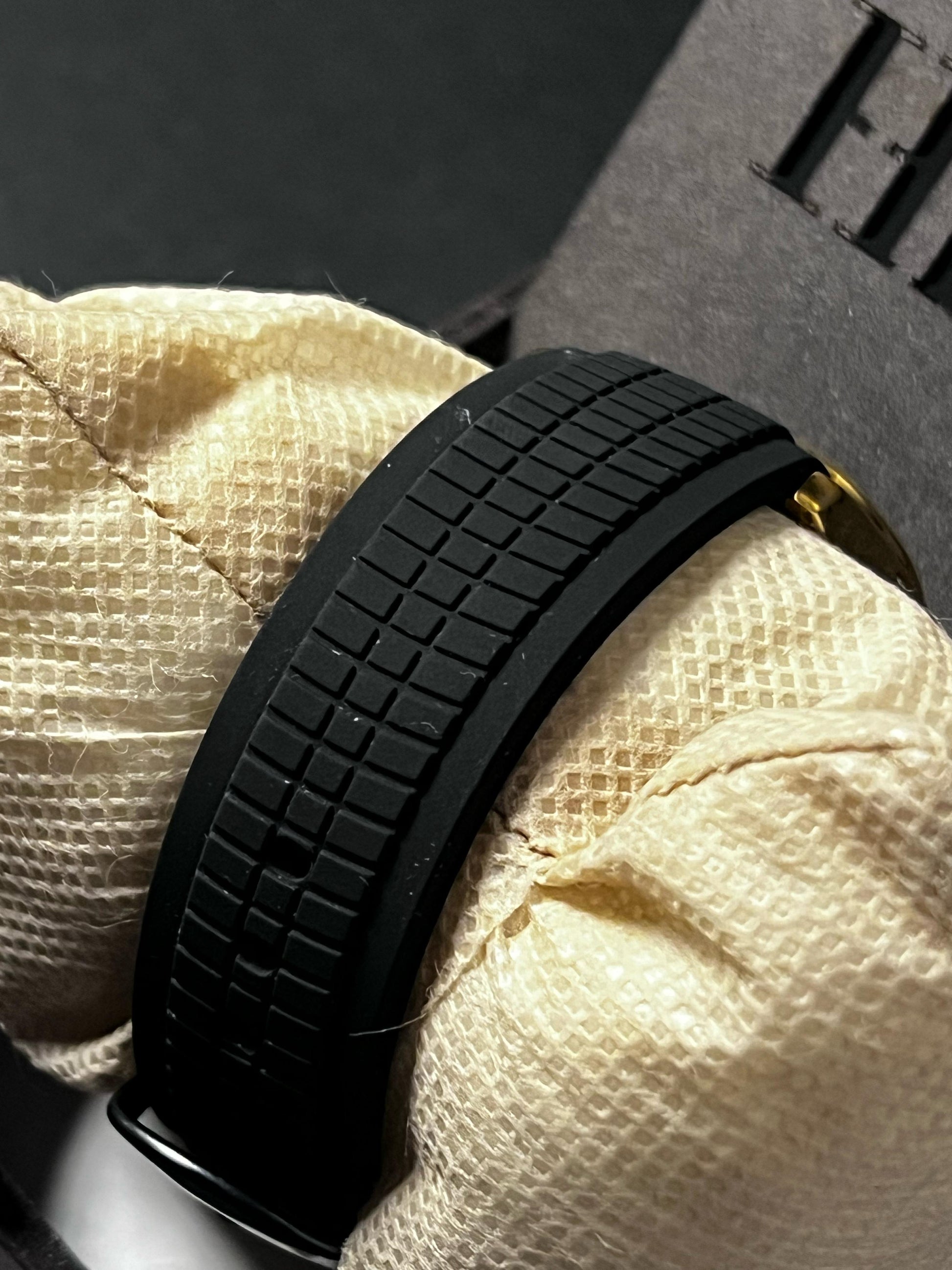 🛡️ Black Rubber Strap with Grid Texture – sporty, comfortable, effortlessly cool