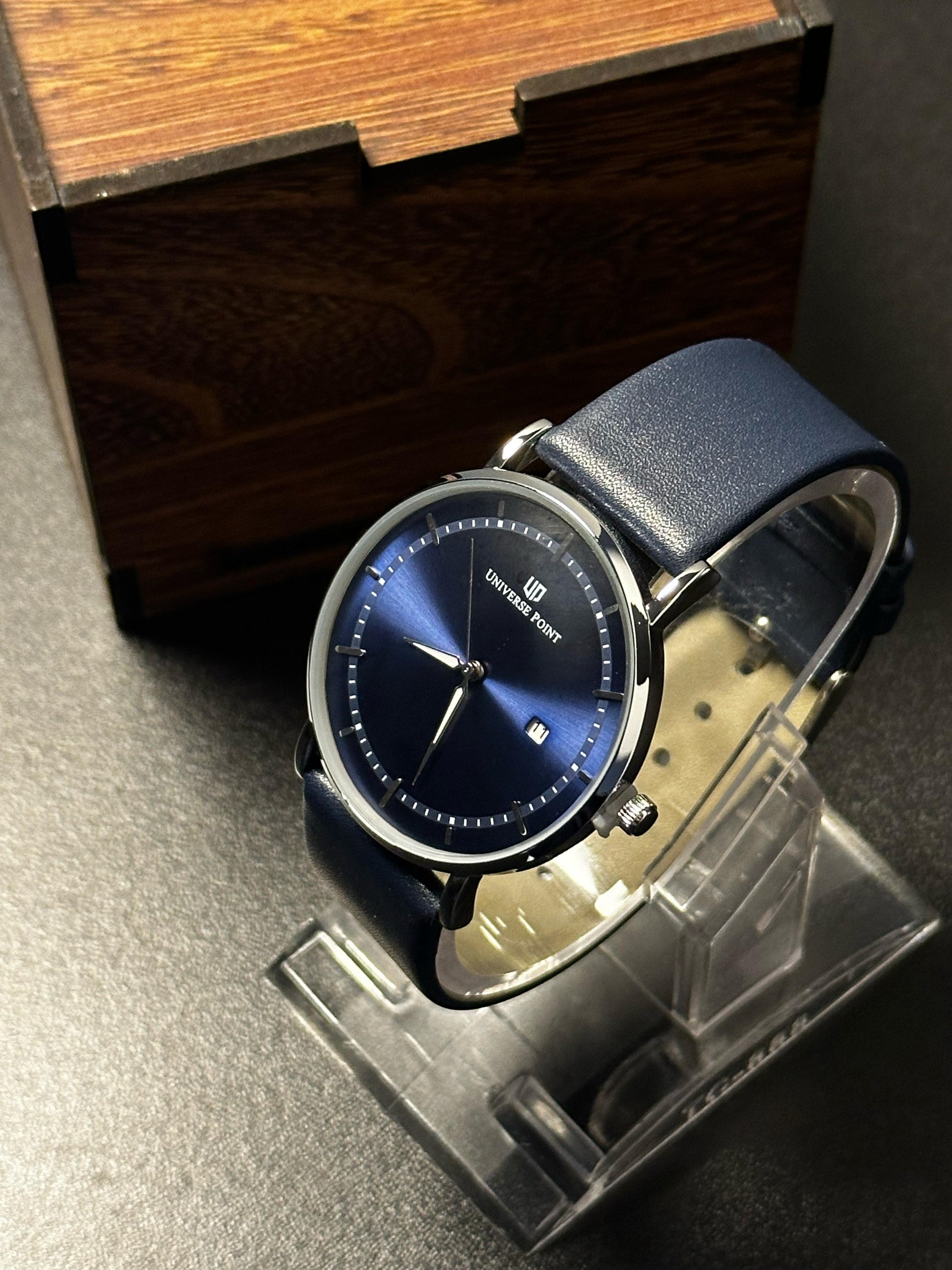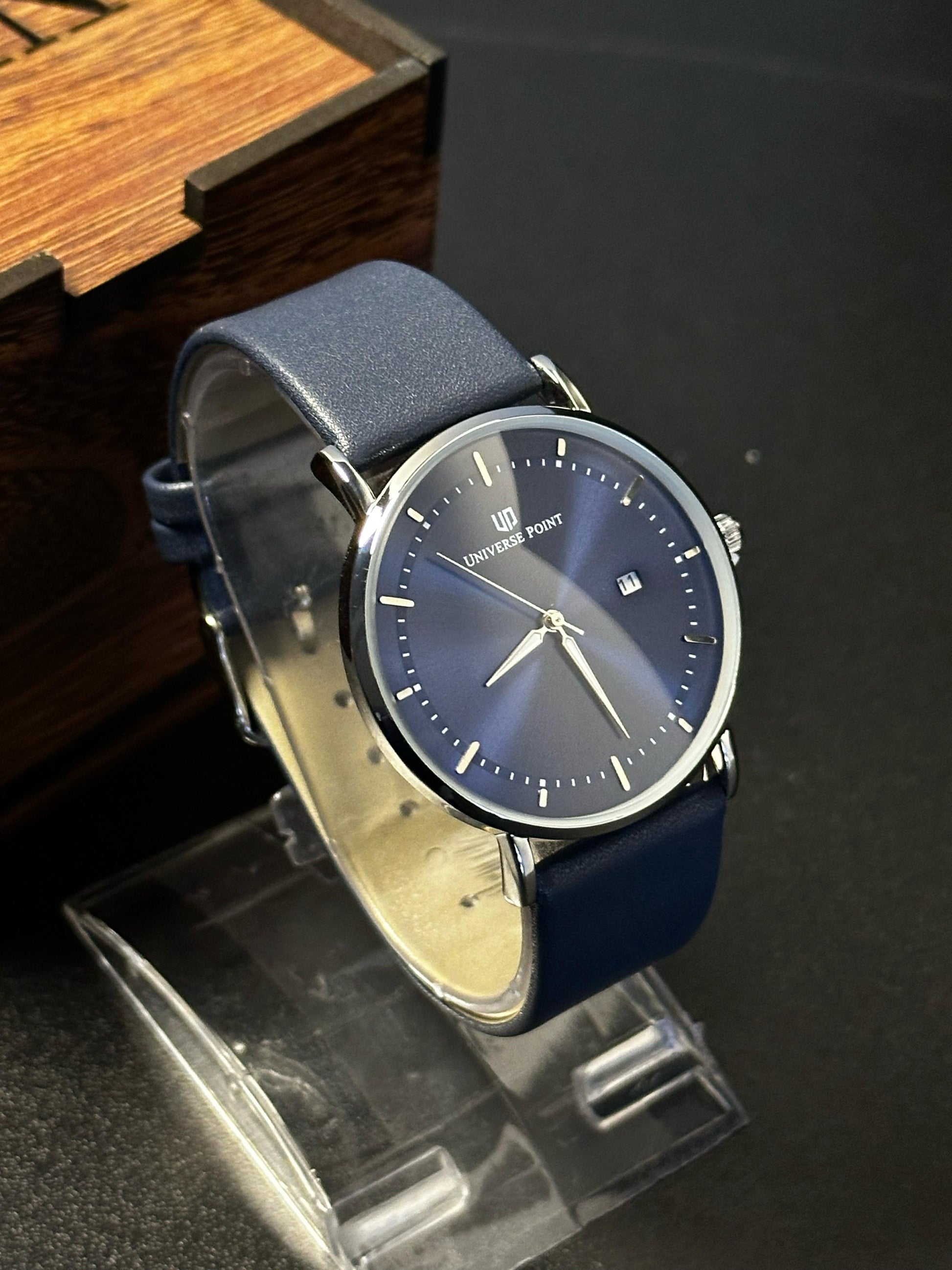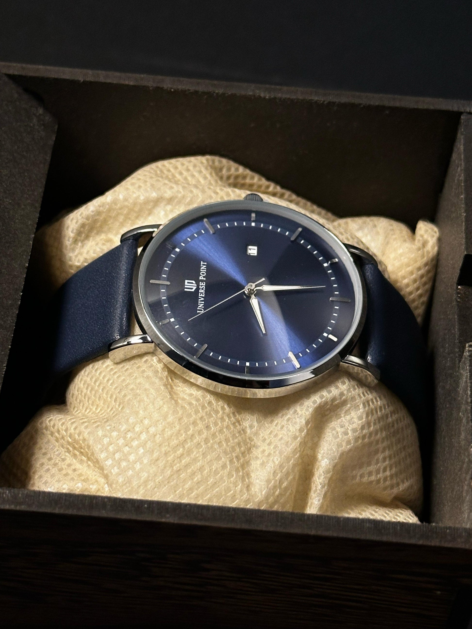 Sleek, striking, and sophisticated — the Midnight Blue watch is a statement of modern minimalism. Its deep blue sunray dial dances with light, while the stainless-steel case and matching leather strap complete the clean, contemporary look.
